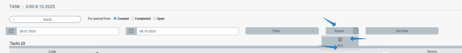 Once you have the filtered data, you can export it in PDF or XLS format. Click the Export button in the upper-right corner and choose your preferred format.