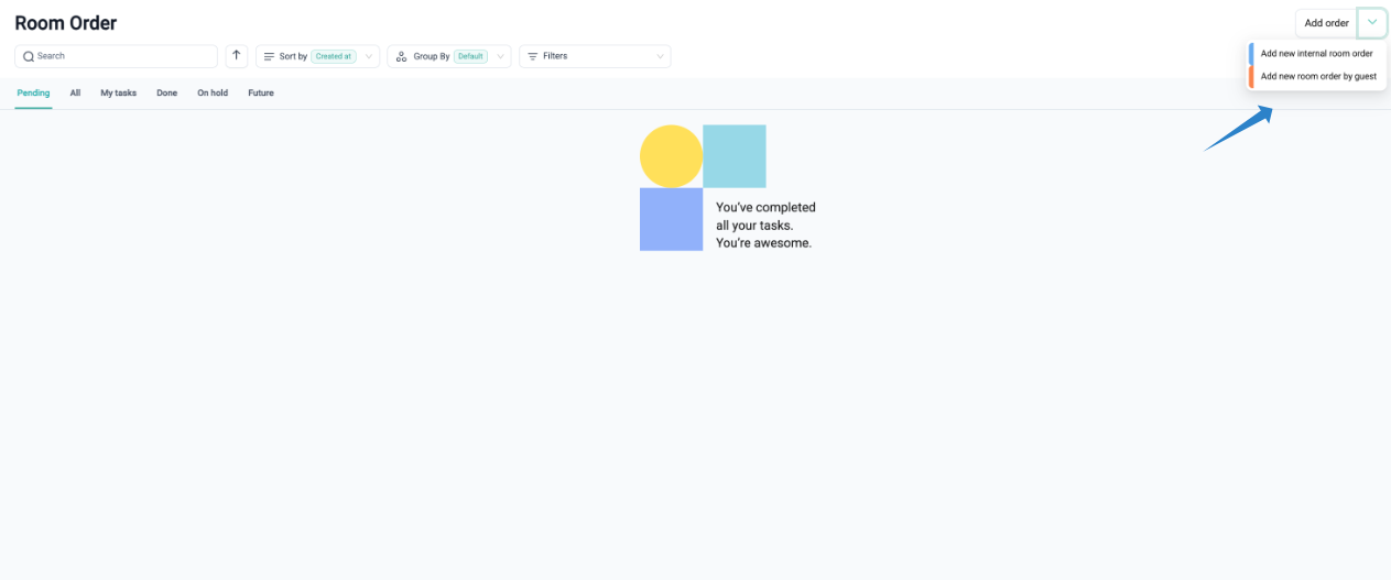 From here, you can view existing room orders or create new ones.