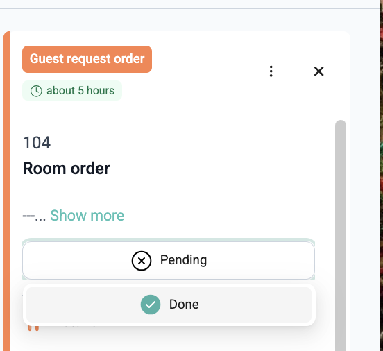 After the order is delivered to the guest, the service team marks it as Done on the Guest Service page.