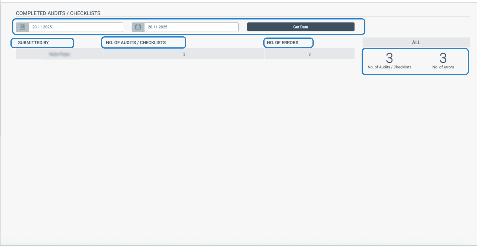 You will then see a detailed breakdown of all checklists completed by that user, grouped by date. For each checklist, the system displays:
