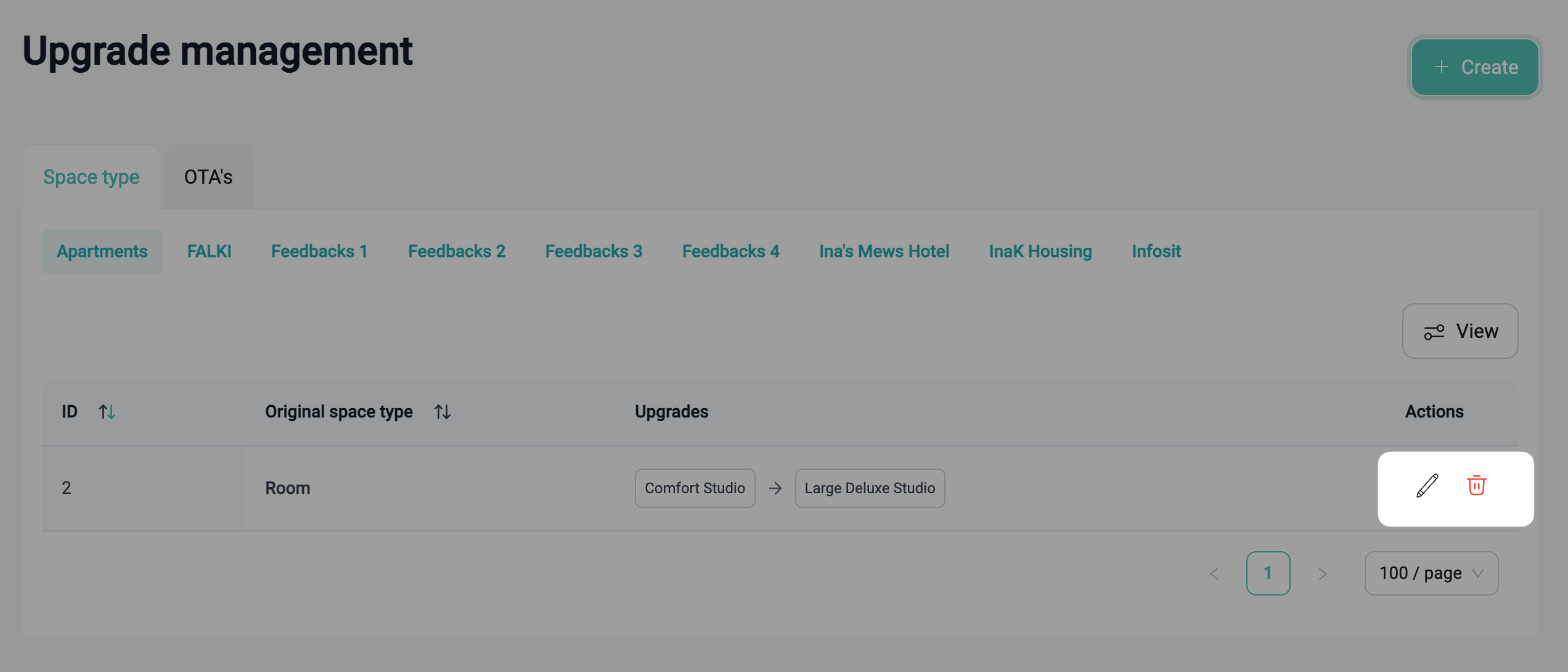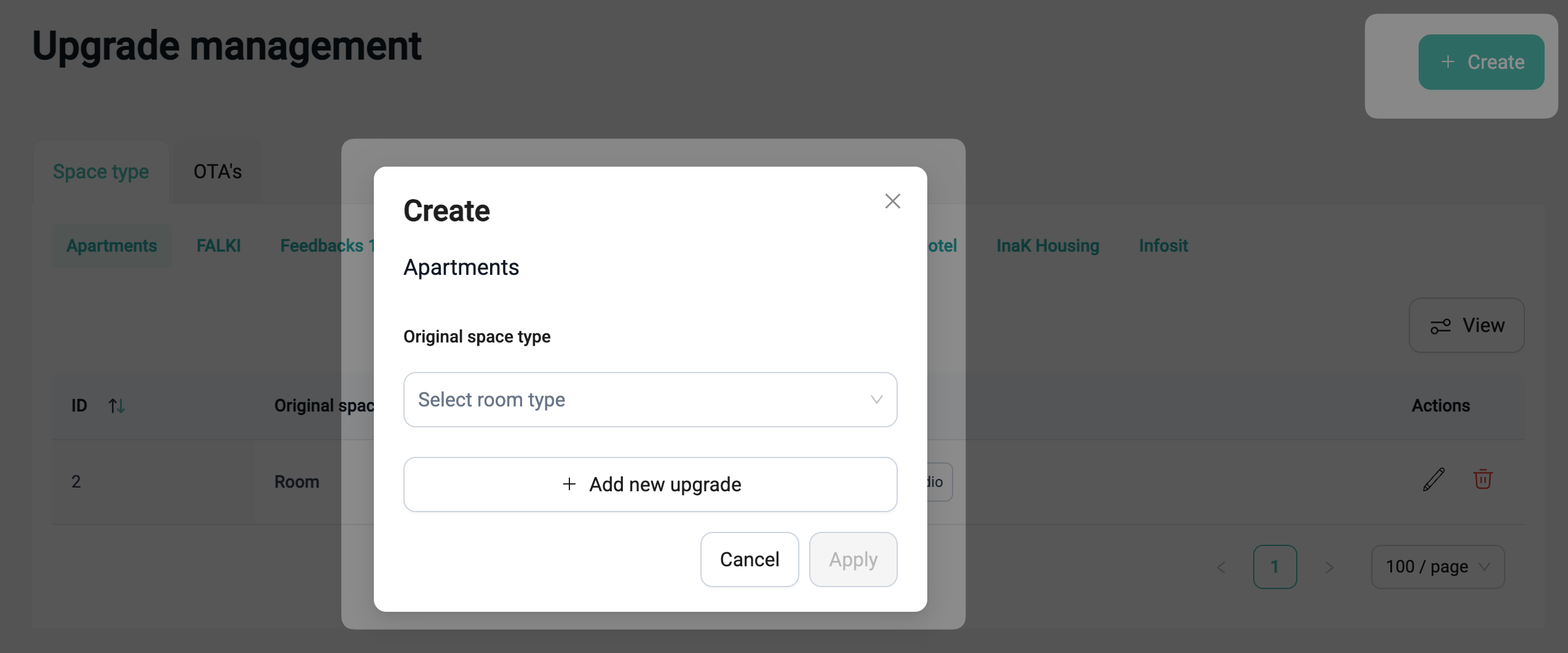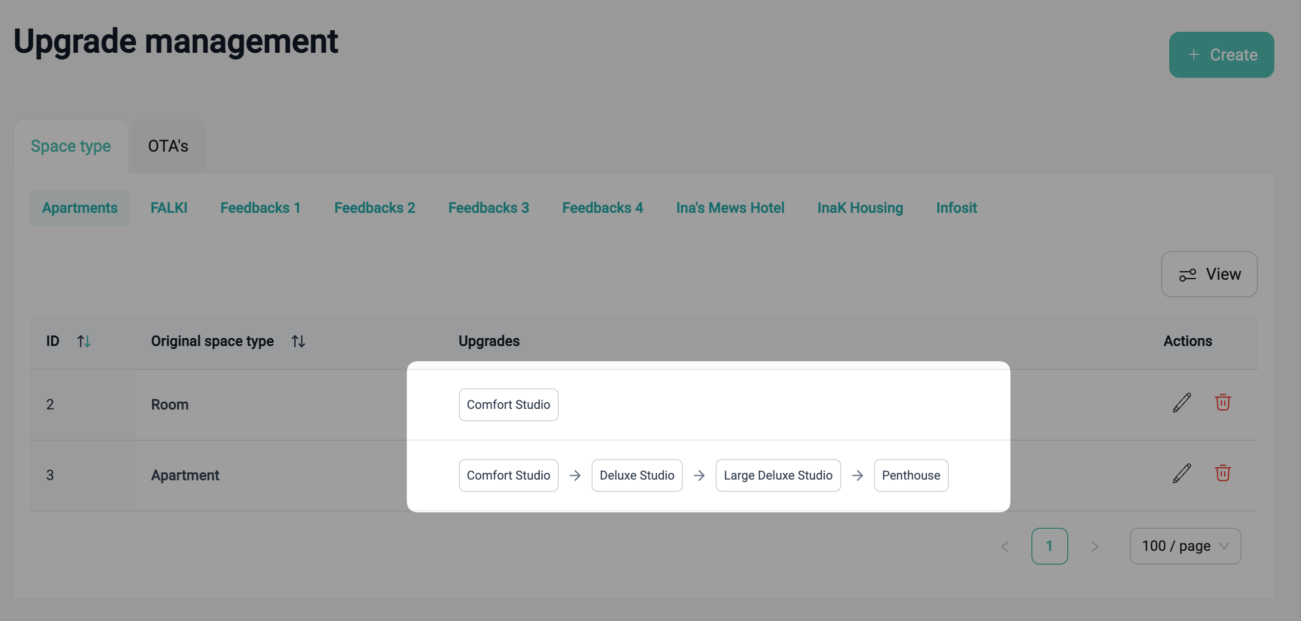 At the moment, upgrade predictions can be set up only for space types. This allows you to define upgrade paths between room types, for example: