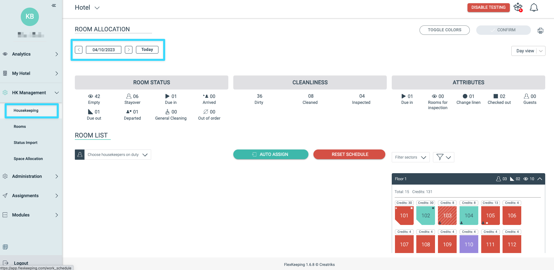 Pour commencer, accédez à la page du menu Housekeeping, où vous découvrirez différentes informations.