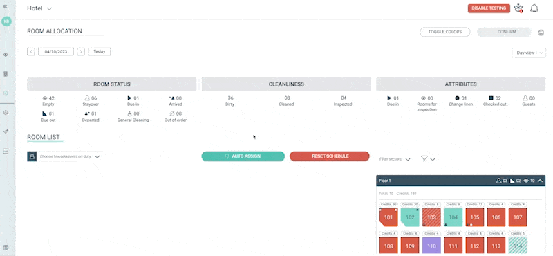 Pour commencer à attribuer les chambres, la première étape consiste à sélectionner les femmes/hommes de ménage en service.