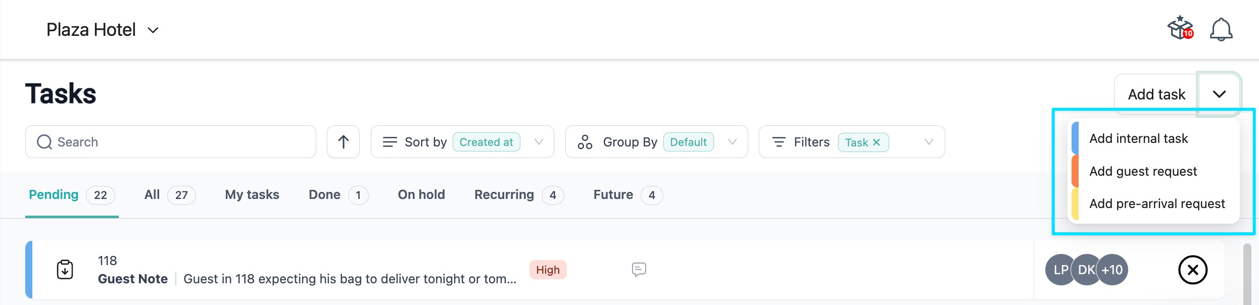 Ajouter une tâche interne (non liée aux réservations des clients)