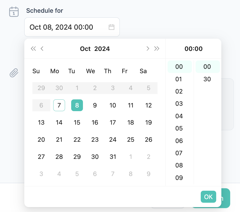 Un calendrier apparaîtra pour sélectionner la date et l’heure. Si aucune heure n’est choisie, la tâche sera créée à 00:00. Cliquez sur OK