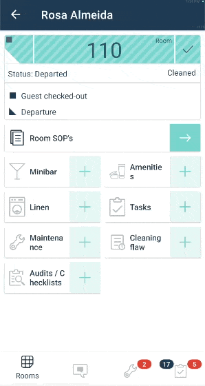 Si le code de mission sélectionné est configuré pour marquer la chambre comme sale, le housekeeper assigné recevra une notification pour retourner à la chambre et effectuer les tâches de nettoyage manquées. Si le code de mission n’impacte pas la propreté de la chambre, le housekeeper recevra quand même une notification, mais l’état de propreté de la chambre ne changera pas.