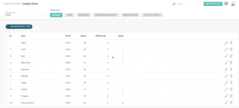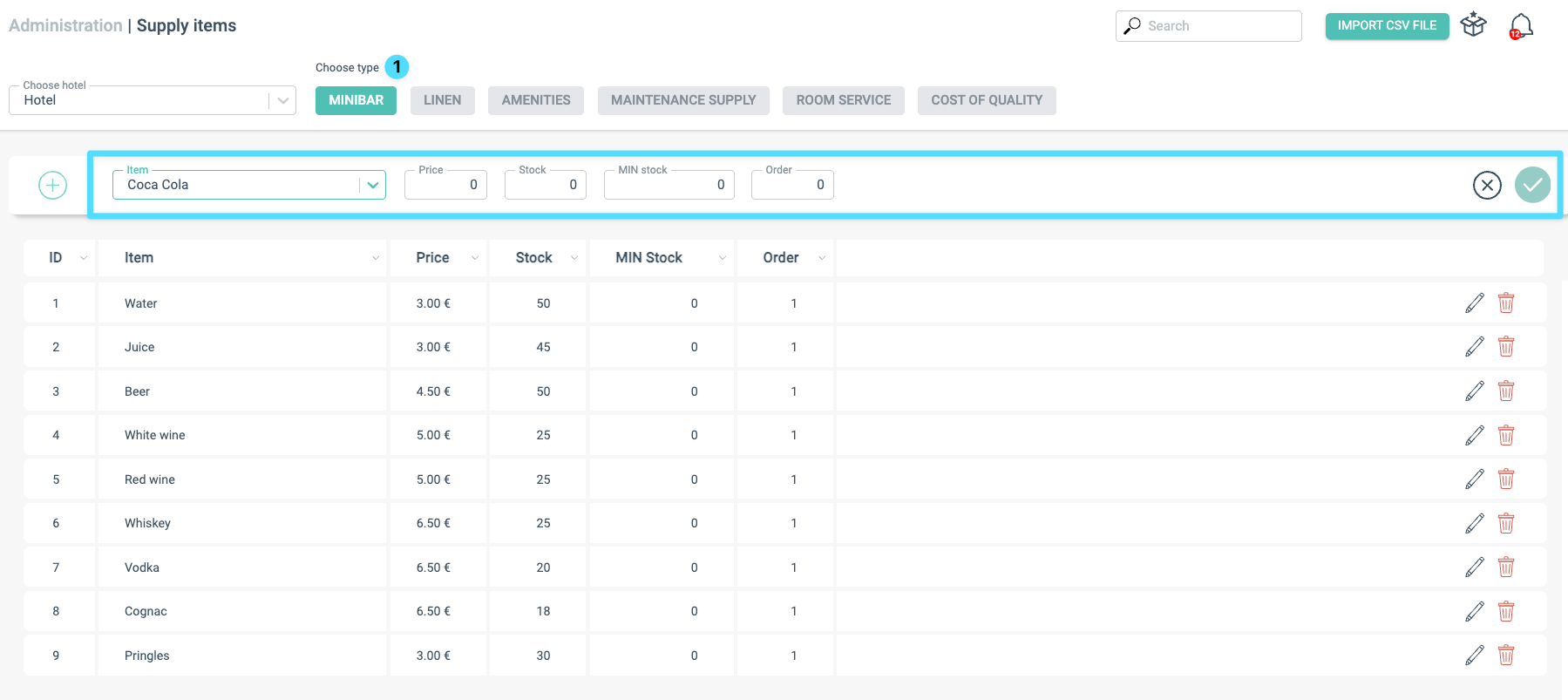 Minibar : Cette catégorie vous permet de lister tous les articles du minibar proposés à vos clients.