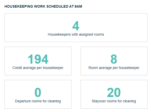 La carte Housekeeping résume le travail prévu au début de la veille et celui réalisé avant 15h* le même jour.