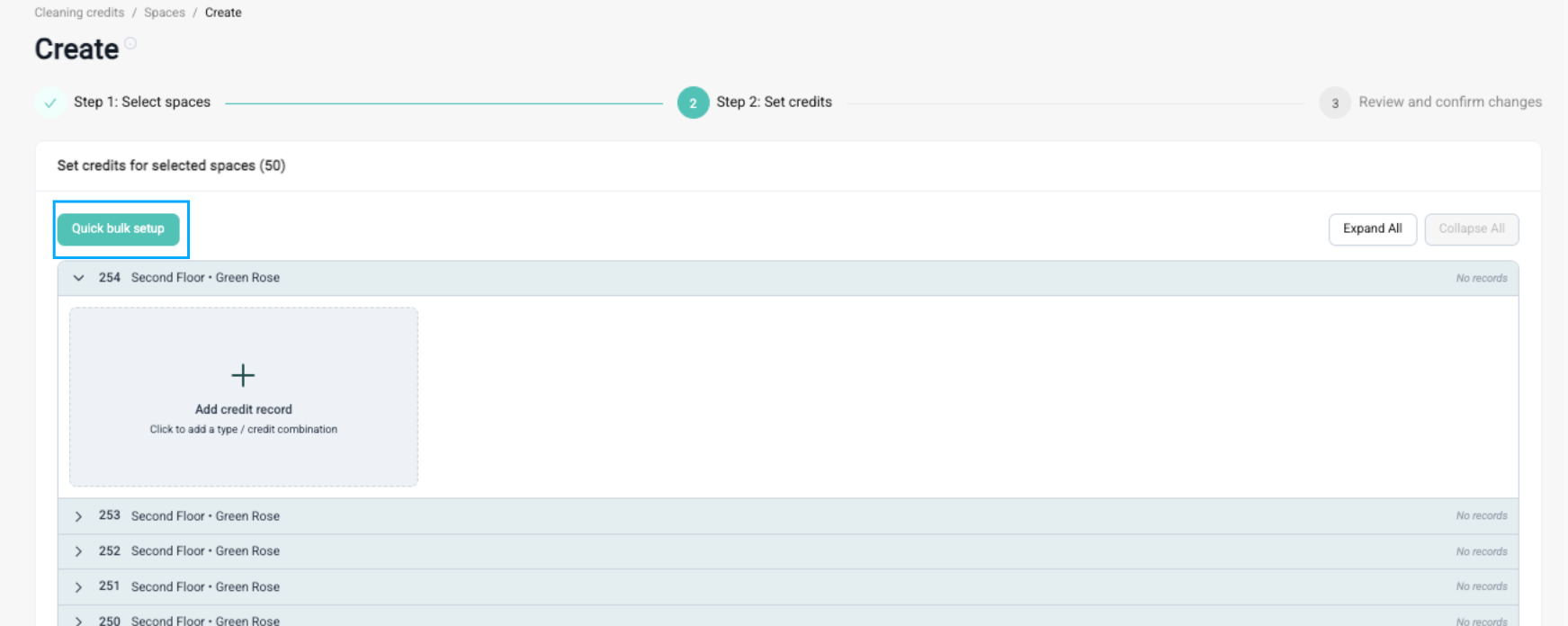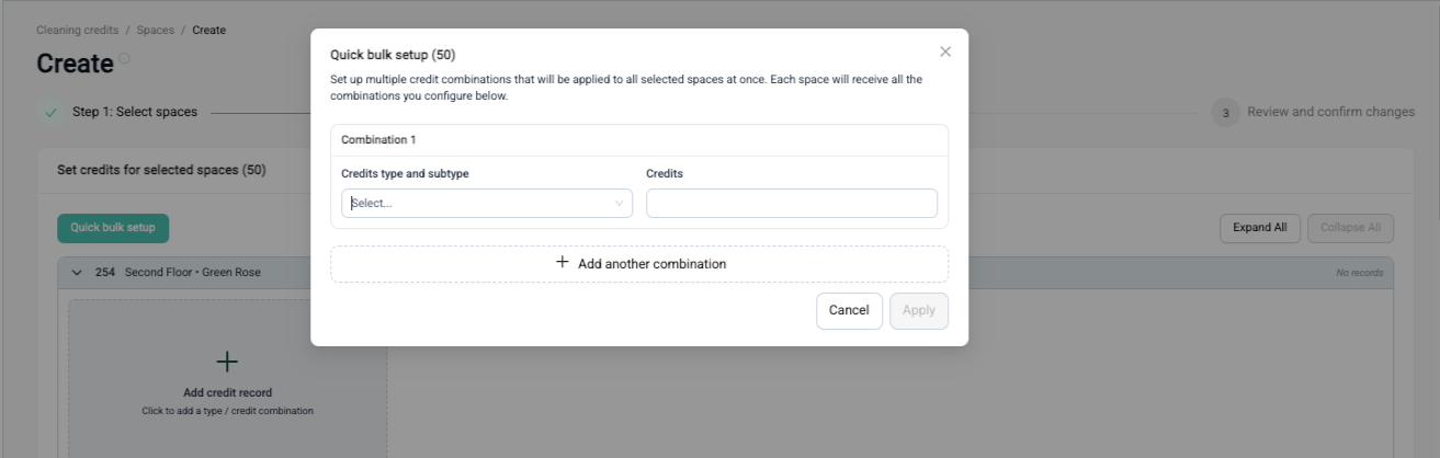 Configurez plusieurs combinaisons de crédits qui seront appliquées à tous les espaces choisis.