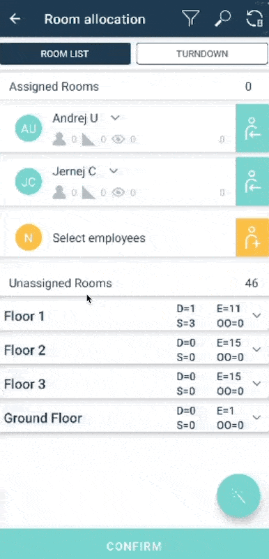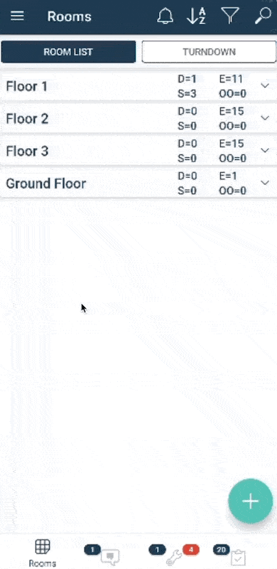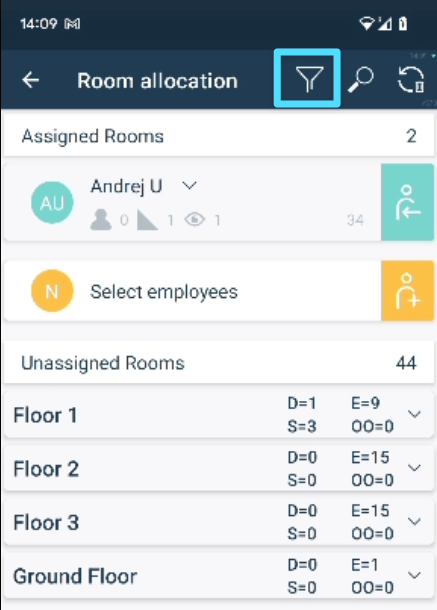 Akkurat som i webversjonen, kan du bruke filterfunksjonen for å tilpasse romvisningen basert på rengjørings- eller reservasjonsstatus.