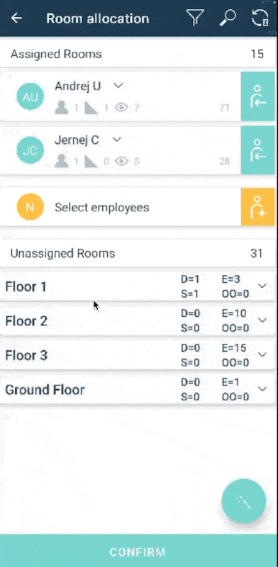- Når du har valgt rommene, bla opp igjen til renholderen og trykk på det grønne ikonet til høyre.
