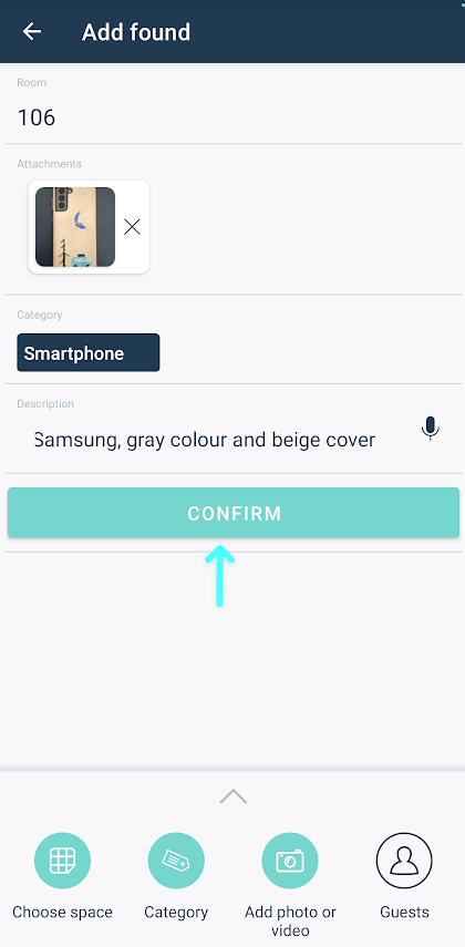 Gå til Hovedmeny – Lost & Found. Trykk på den grønne plussknappen, velg mellom alternativene misset eller funnet, og fyll ut skjemaet. Trykk Bekreft for å lagre endringene.