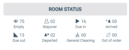Viser at en ny gjest ankommer dette rommet i dag. I forhold til “Due in”-status kan dette være synlig på tomme, boende eller avreiserom. “Due in”-status brukes når rommet allerede er tomt (enten etter avreise i dag eller tidligere).