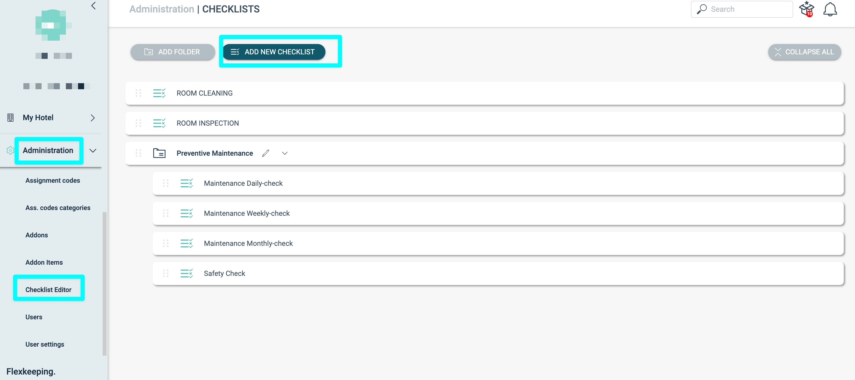 Klikk på den blå knappen Legg til ny sjekkliste.