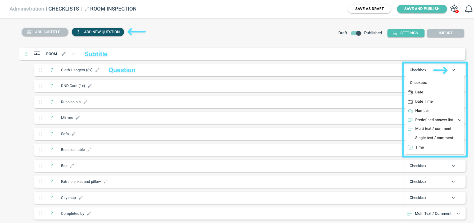 Du kan gruppere sjekklistepunktene i kategorier / undertitler etter behov.