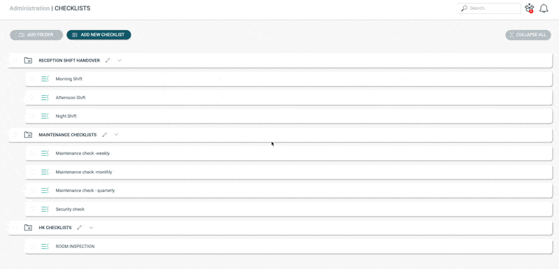 I redigeringsverktøyet hvor du først la til en sjekkliste, kan du også opprette en mappe ved å klikke Legg til mappe, og deretter legge til undermapper osv. Det finnes ingen begrensninger for struktur. Rekkefølgen og plasseringen oppdateres automatisk med dra og slipp.
