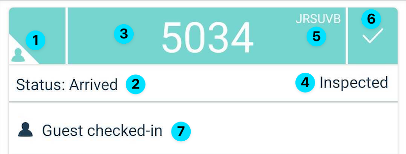 - Et ✕-ikon indikerer at rommet er skittent, mens et ✓-ikon betyr at rommet er rent eller inspisert. Dette symbolet er spesielt nyttig når rommet har statusen DND (Ikke forstyrr) eller OOO/OOS (ute av drift), når grønn farge ikke vises.
