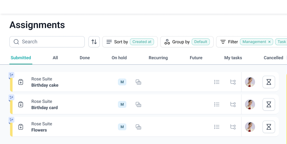 Hver tjeneste kan inkludere detaljerte gjøremålslister, forhåndstildeling til avdelinger og tidsfrister. De kan også ha stadier og underoppgaver for å sikre sømløs levering.