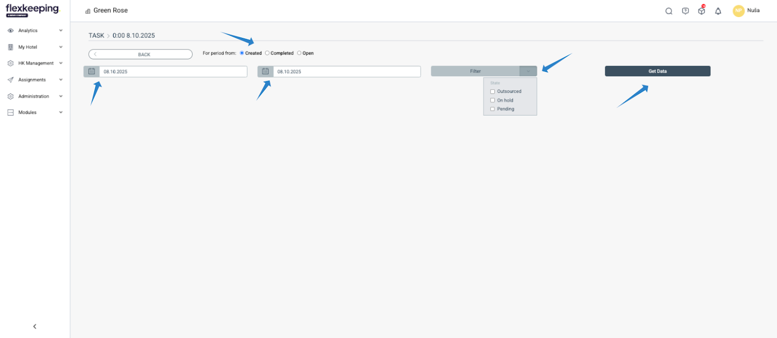 Trykk på “Hent data”-knappen øverst til høyre. Oversikten over alle valgte data vil vises. Ikke bekymre deg hvis det virker overveldende – du kan alltid justere filtrene for å finne nøyaktig det du trenger.