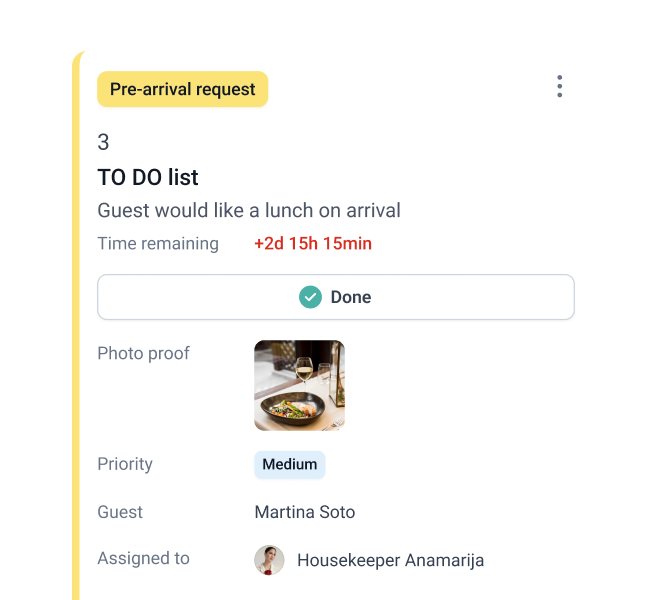 Foto dokaz je mogoče vključiti za opravila, popravila, napake pri čiščenju in naročila v sobo.